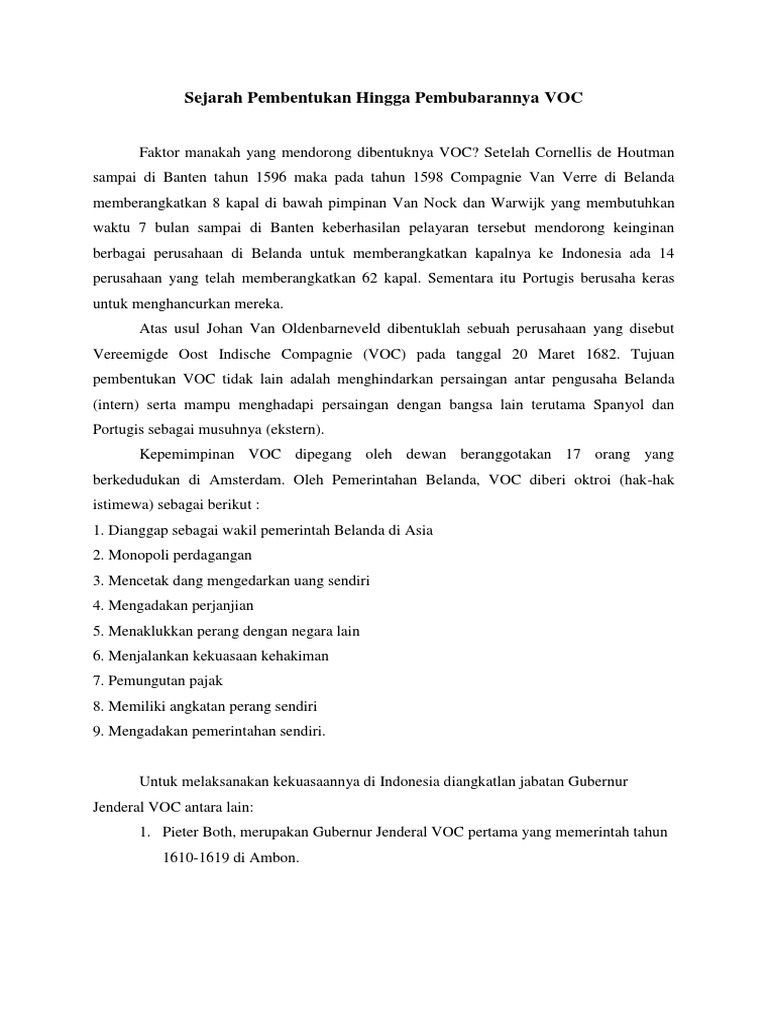 Untuk menghadapi persaingan antarpedagang belanda agar mampu menghadapi saingan dengan bangsa lain. Voc atau serikat serikat perusahaan dagang hindia timur didirikan pada tangal 20 maret 1602. Sejarah pembentukan dan pembaruan hukum keluarga islam di indonesia tidak pernah bisa terlepas dari dialektika evolusi budaya hukum yang terjadi dari waktu ke waktu. Sejarah voc perusahaan terbesar sepanjang sejarah manusia. Terbukanya jalur perdagangan di indonesia menyebabkan munculnya persaingan diantara para pedagang, baik dengan belanda sendiri maupun dengan pedagang eropa lainnya.